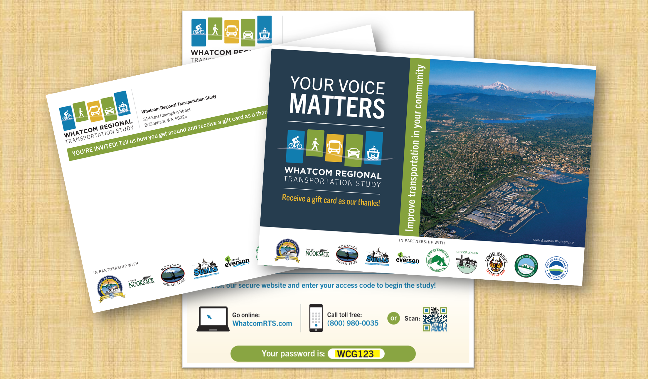 The 2018 Whatcom Regional Transportation Study was conducted between January 2018 and April 2019. WCOG hired Resource Systems Group, Inc. to prepare the survey's instruments, conduct the survey, process the data, and provide reports and documentation.